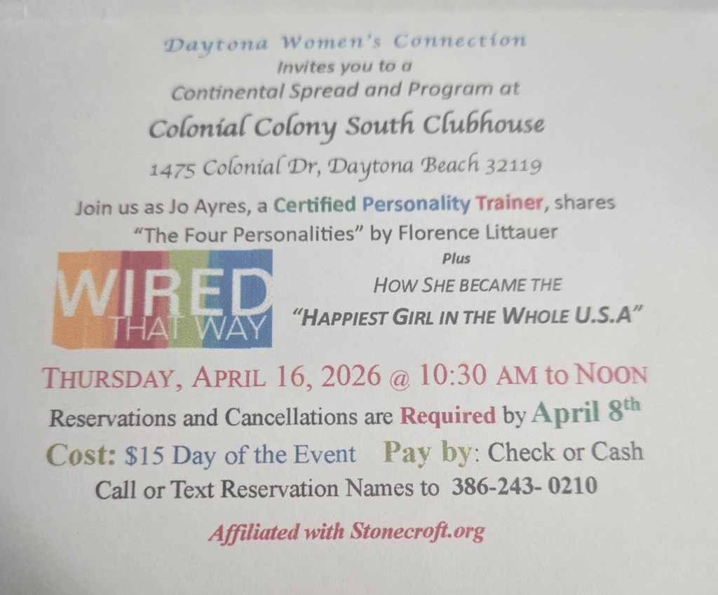 Daytona Beach Women’s Connection cordially invite you and your friends to our Monthly Prayer Connections held at 10:00 am on the 2nd Tuesday of each month at: